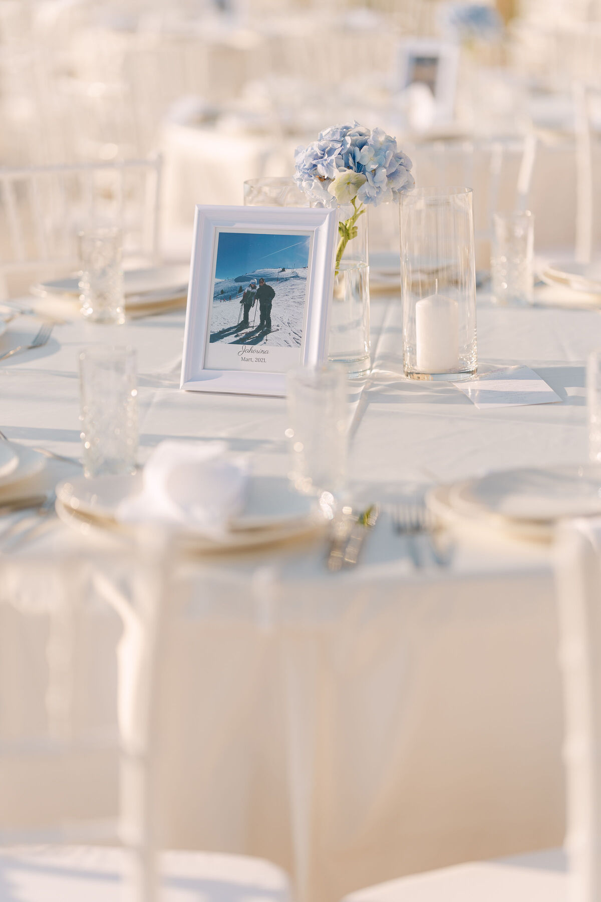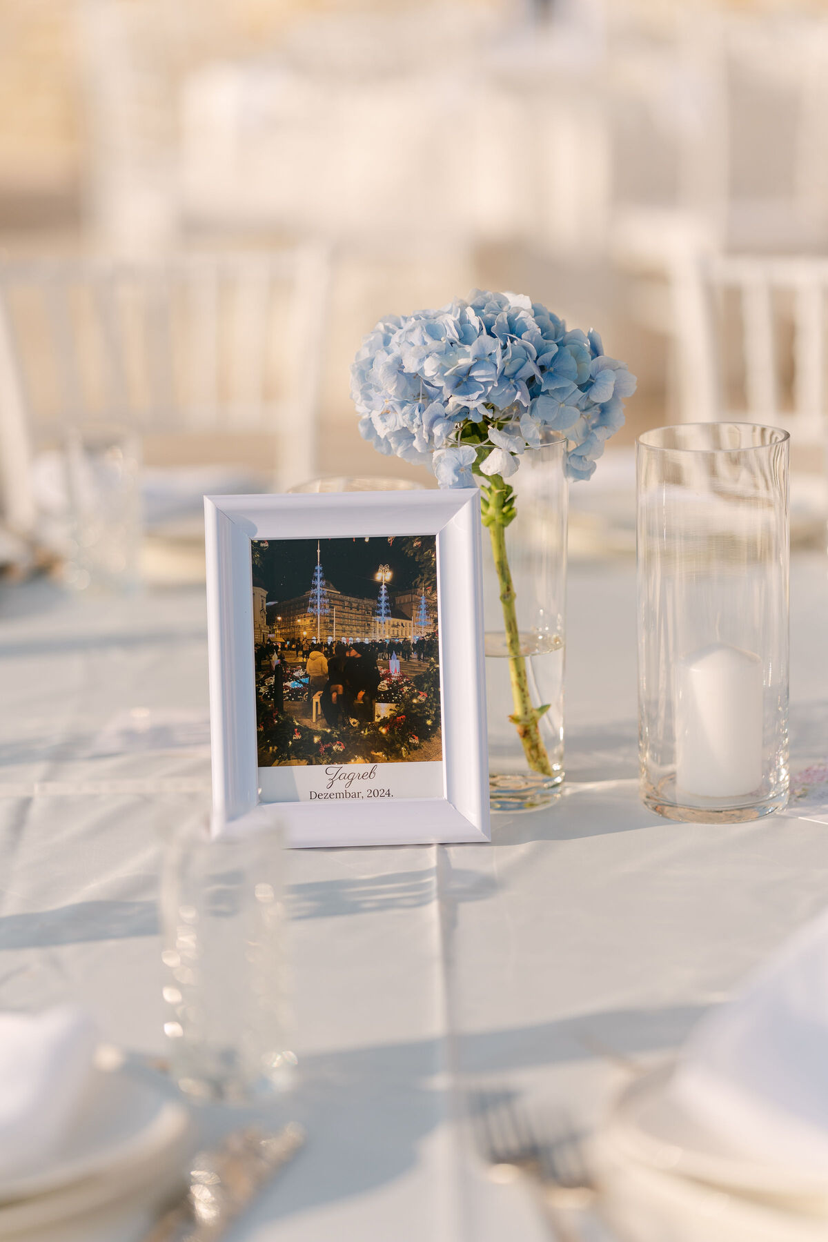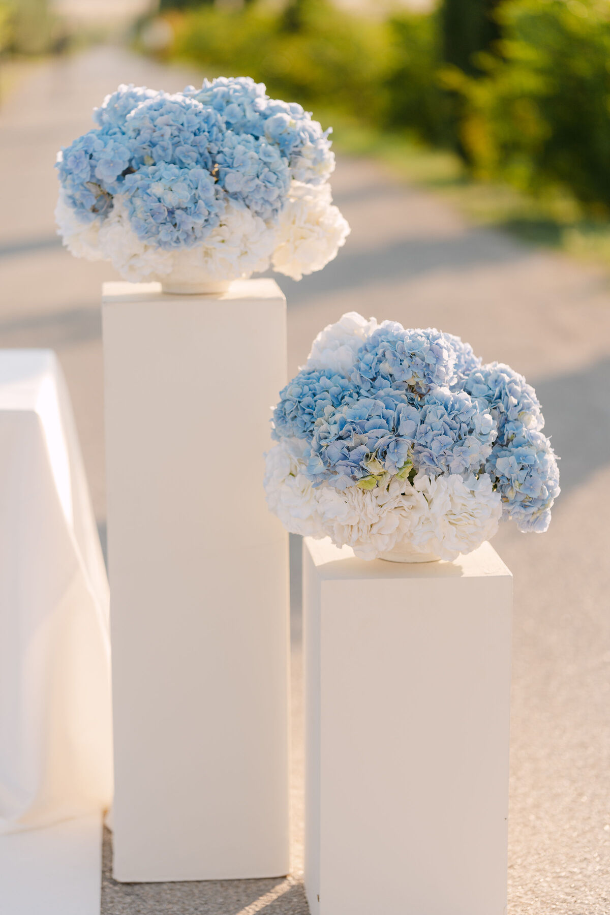 Okupano nježnim sjajem južnog mediteranskog sunca, ovo vjenčanje odvija se u beskrajnim nijansama plave — od horizonta gdje se spajaju priroda i nebo, do nježnih hortenzija koje kao da plešu na toplom povjetarcu.